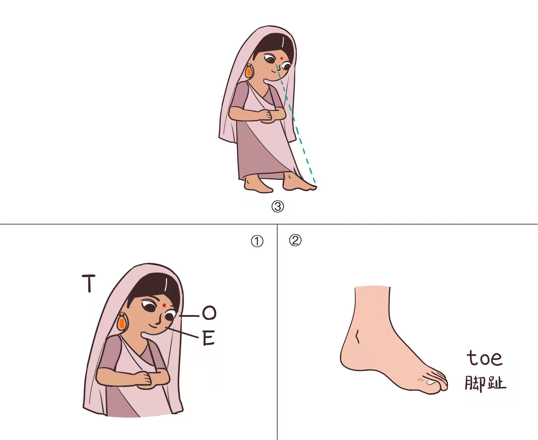 toe=印+眼+鼻→脚趾