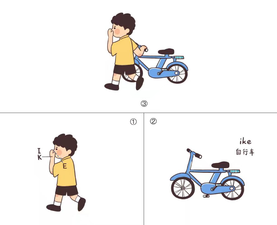 我们规定:ike=自行车。从字母结构上讲,ike是bike(自行车)的核心成分。