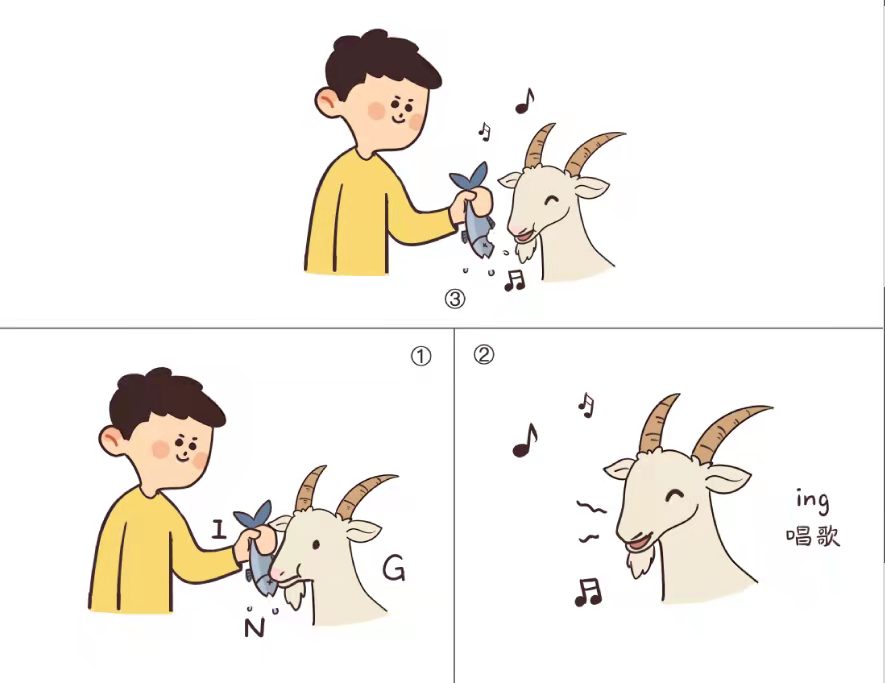 我们规定:ing=唱歌。从字母结构上讲,ing是sing(唱歌)的核心成分。