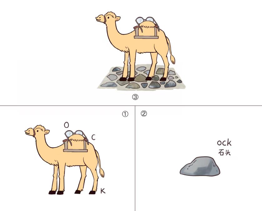 我们规定:ock=石头。从字母结构上讲,ock是rock(石头)的核心成分。