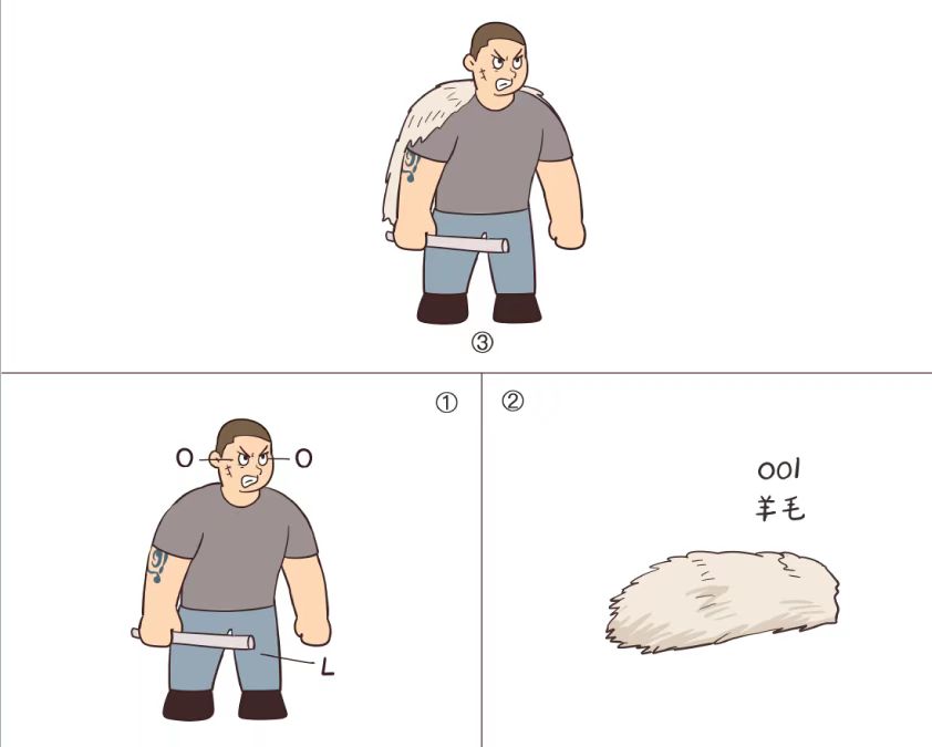 我们规定:ool=羊毛。从字母结构上讲,ool是wool(羊毛)的核心成分。