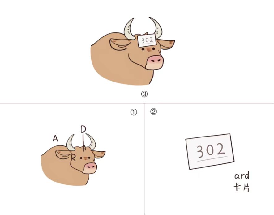 ard=牛+头+门→卡片