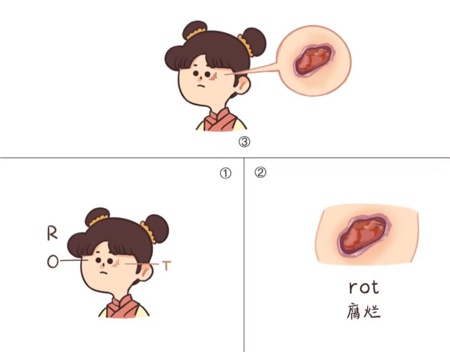 rot=头+眼+印→腐烂