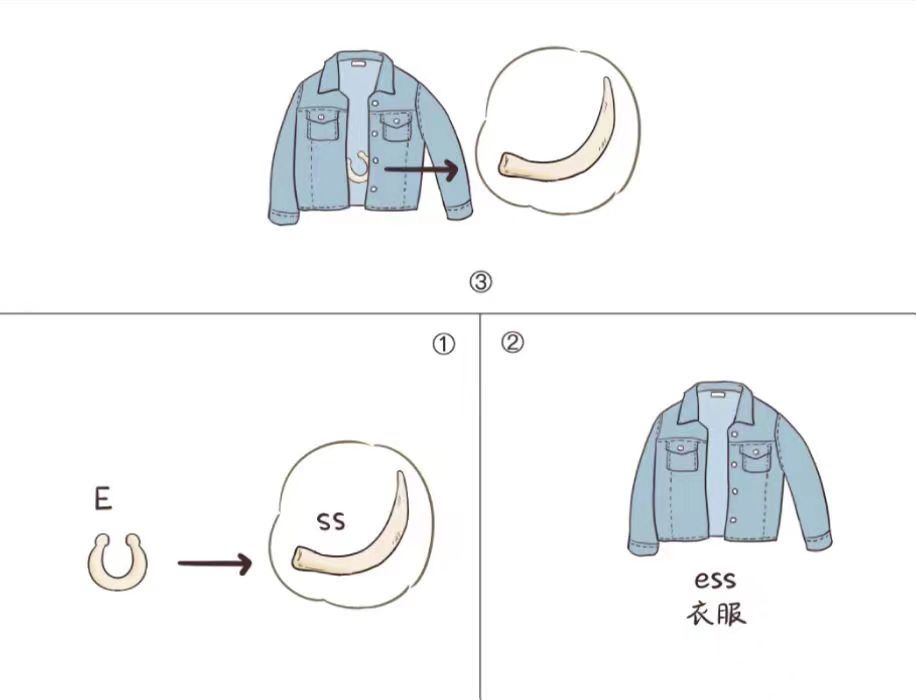 从字母结构上讲,ess是dress(衣服)的核心成分。