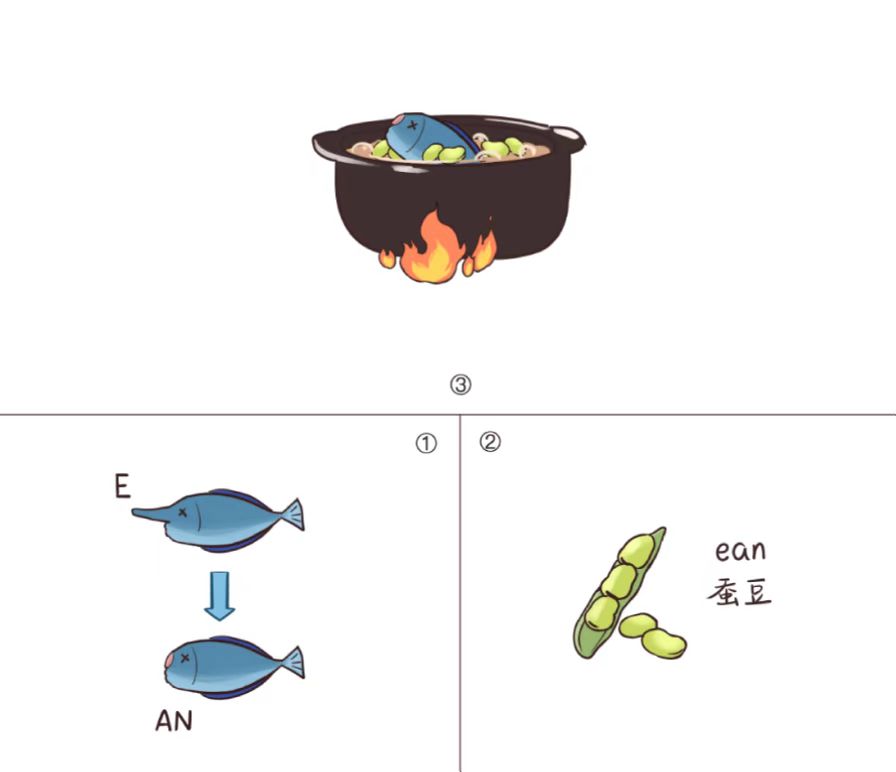 从字母结构上讲,ean是bean(蚕豆)的核心成分。