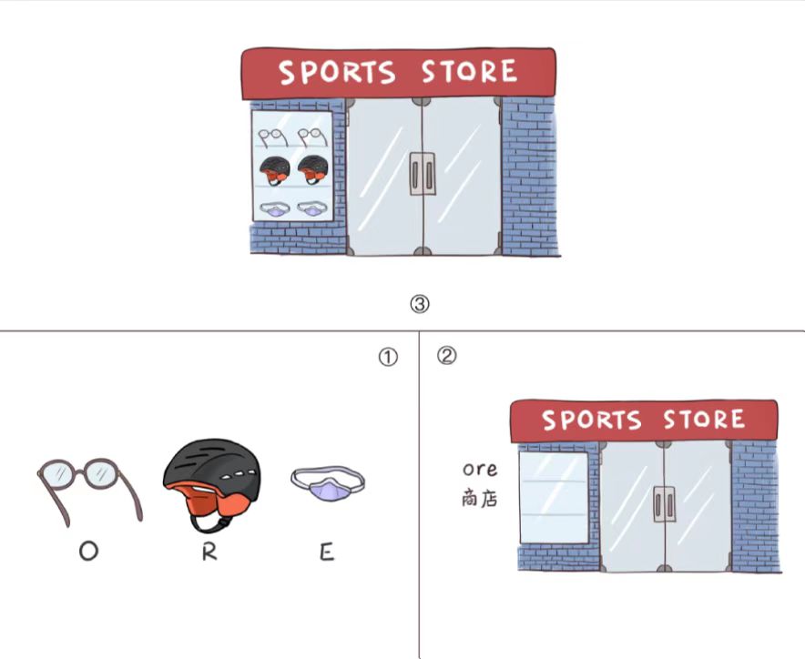 从字母结构上讲,ore是store(商店)的核心成分。