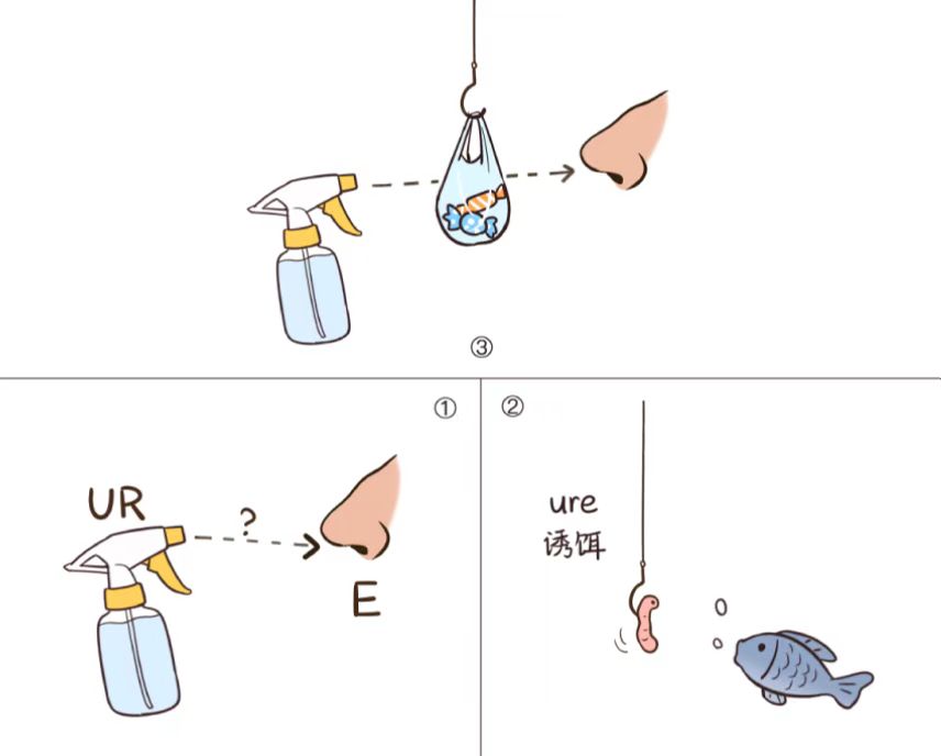 我们规定:ure=诱饵。从字母结构上讲,ure是lure(诱饵)的核心成分。