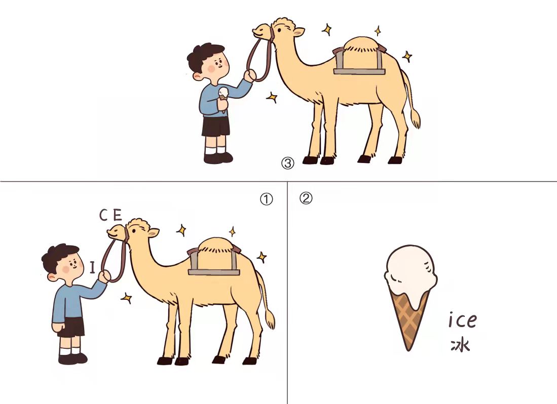 嫁接:左手牵着骆驼鼻子,右手拿着冰激淋。